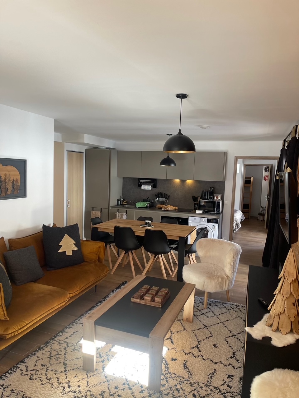 La cuisine ouverte sur le séjour est entièrement équipée pour vous permettre de tout faire sur place : du petit déjeuner familial à la grande raclette du samedi soir. Aucun équipement à apporter, aucune soirée à improviser au resto.
