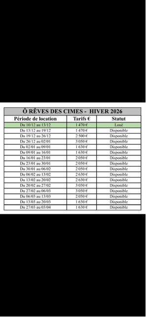 | 19/12 26/12 | Vacances | 2 500 € | Loué |